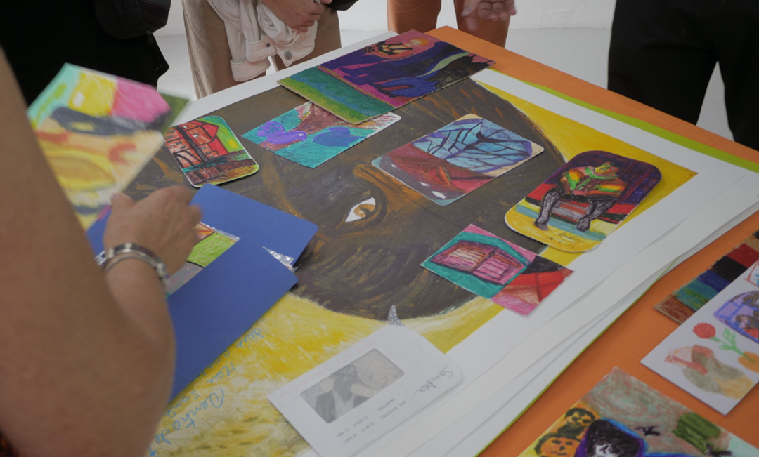 Os primeiros azos criativos de Amélia Fernandes aconteceram no chão, com a tenacidade de um pau a desenhar junto do seu pai na infância — figura que juntamente com o seu marido Custódio, aparece recorrentemente nas suas imagens pictóricas.