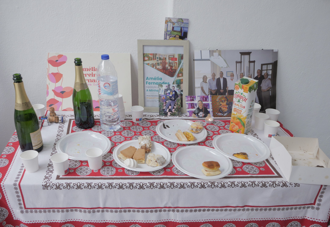 Amélia Fernandes voltou a passar por ali novamente e diariamente. Desde 2002, após uma cirurgia que a prostrou em coma numa cama de hospital, tem encontrado na pintura o seu prazer e ofício. Pinta tudo o que lhe espanta o olho ou a recordação. As suas imagens são aberturas para o mundo que vê ou recorda a pouco e pouco sem hierarquias, nem freios de