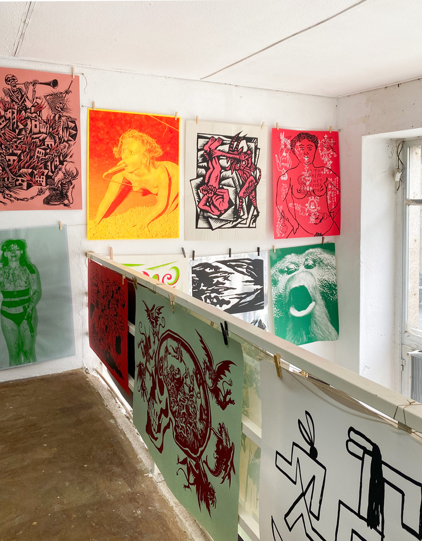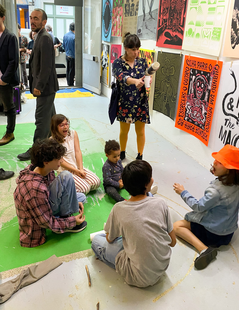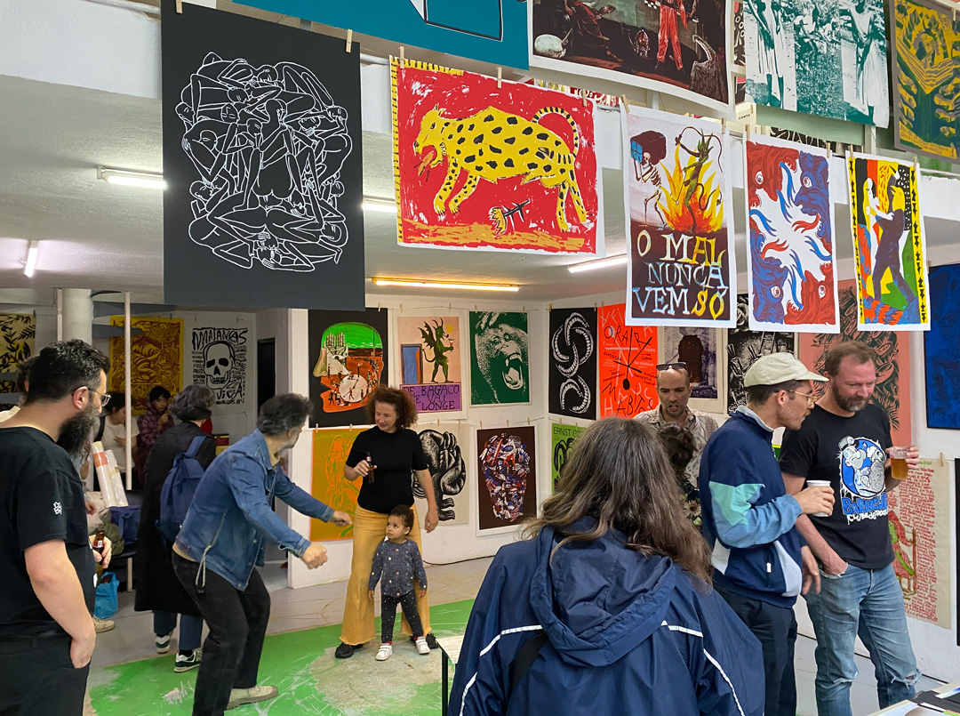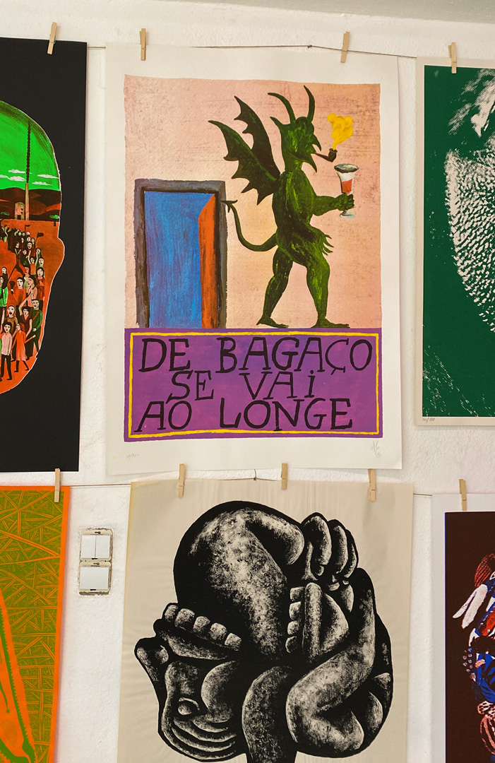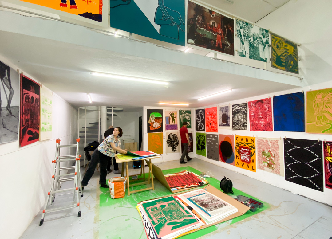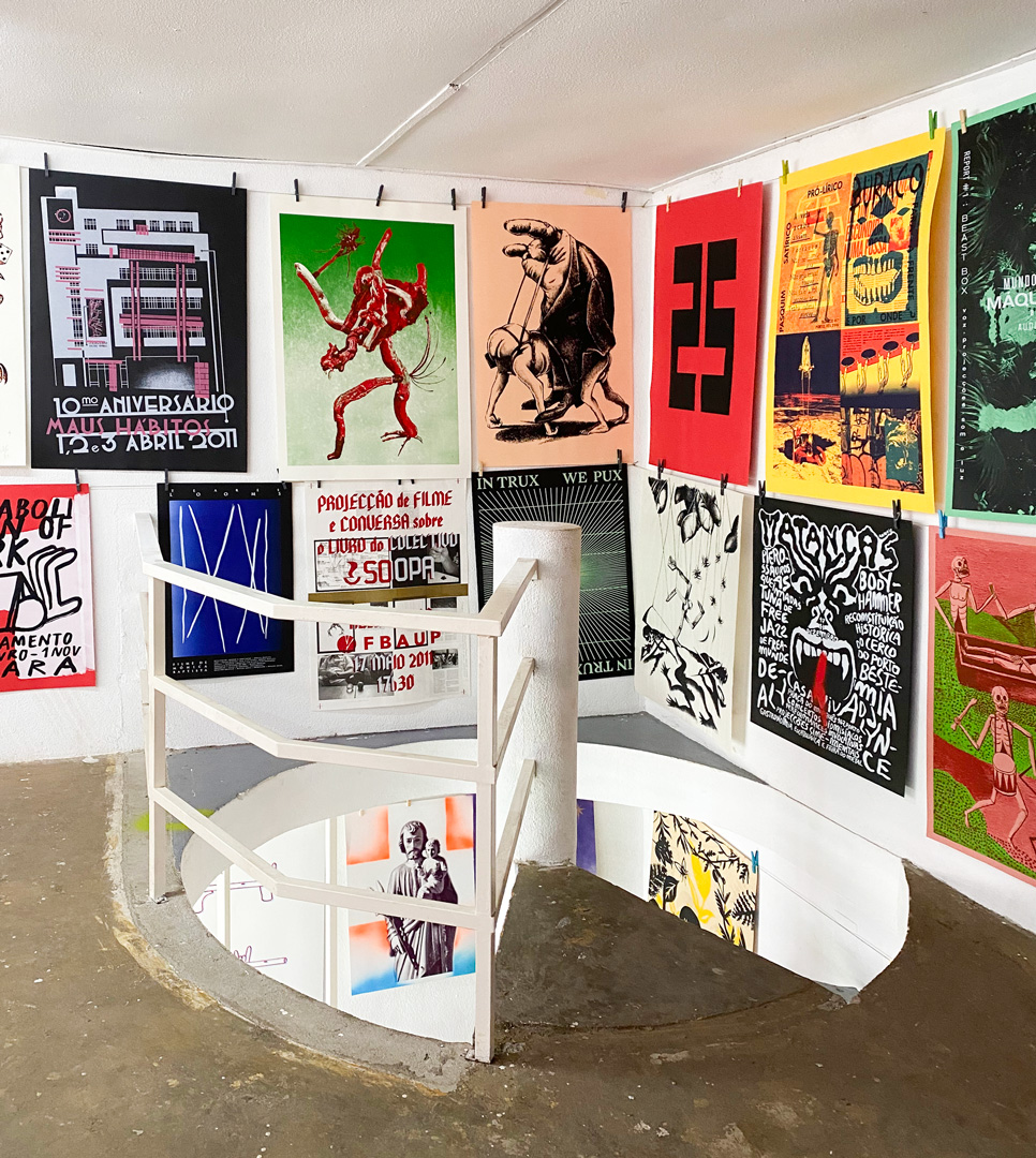 A oficina Arara trouxe para o espaço da Rua do Sol o seu universo gráfico e os momentos de partilha e convívio habituais na sua oficina. Transformaram o espaço numa espécie de loja aberta para a rua.